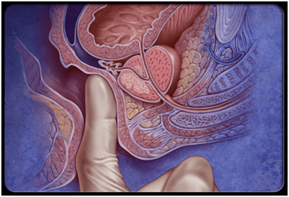 Physical examination OR Digital rectal examination: The Urologist gently feels the consistency of the prostate using a well lubricated gloved finger through the anus.