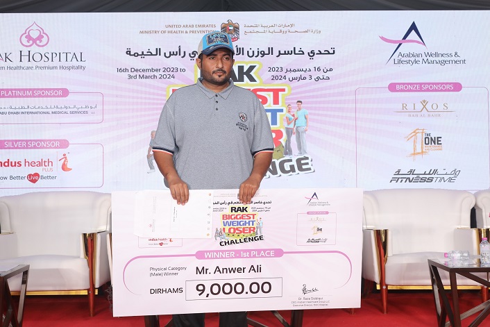 Anwer Ali, a 31-year old Pakistani national, emerged victorious in the Physical Category Male, clinching AED 9,000 after losing 30.2 kgs. Indian national Akbar Shahid and Egyptian expatriate Haitham Elsafy Mohamed Elkady secured the 2nd and 3rd positions, shedding 22.6 and 21.1 kgs, respectively, and were awarded AED 4,400 and AED 2,100 in cash.
