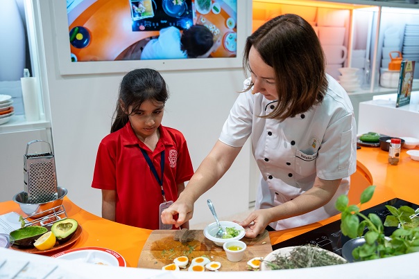 في أجواء صباحية، غمرت الأطفال مشاعر السعادة والحماس بانضمامهم لورشة “التجربة الخيالية” التي استضافها ركن الطهي في مهرجان الشارقة القرائي للطفل بدورته الـ 15، التي انطلقت تحت شعار “كن بطل قصتك”، حيث تعلموا كيفية تحضير فطائر اليقطين، الحلوى الشهيرة المعروفة في معظم سلاسل هاري بوتر، بمساعدة الطاهية سيفتلانا، التي أشرفت على الورشة وشاركت الأطفال الكثير من المعرفة حول الطعام.