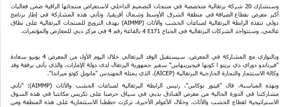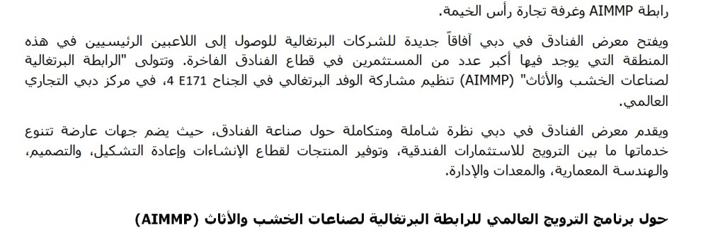 عشرين شركة برتغالية متخصصة في منتجات التصميم الداخلي تشارك في معرض الفنادق في دبي