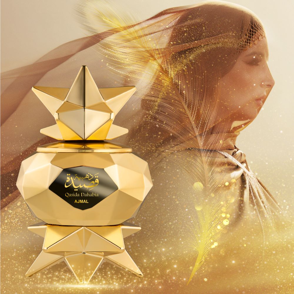- ‘Qasida Dahabia’ stands as Ajmal Perfumes’ latest masterpiece, crafted to embody the elegance and inner strength of the modern woman.