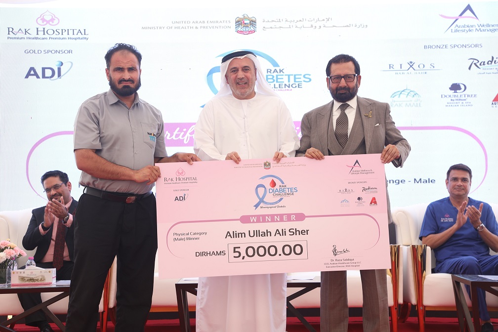 Ras Al Khaimah, UAE – November 14, 2024 – RAK Hospital’s flagship community initiative, the RAK Diabetes Challenge (RAKDC24), celebrated the success of over 5,000 participants from across the UAE as the three-month challenge concluded on World Diabetes Day. Conducted in collaboration with the Ministry of Health and Prevention (MOHAP) in Ras Al Khaimah, the third edition of this initiative awarded AED 20,000 in cash prizes, along with generous gift vouchers from sponsors such as ADI, RAK Mall, Auto Nation Services, Rixos Bab Al Bahr, Radisson Resort Ras Al Khaimah Marjan Island and Double Tree by Hilton Resort & Spa Marjan Island.