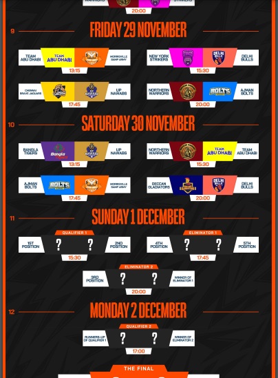 The 2024 edition of the Abu Dhabi T10 will take place from 21 November to 2 December with the organisers looking to build on the 2023 record-breaking, 12-day tournament when the 2023 season attracted over 133,000 fans, US $443 million in gross sponsorship value, US $695million in TV sponsorship, US $138 million in social media sponsorship gathering an online audience reach in excess of 700 million and more than 146 million digital video views.