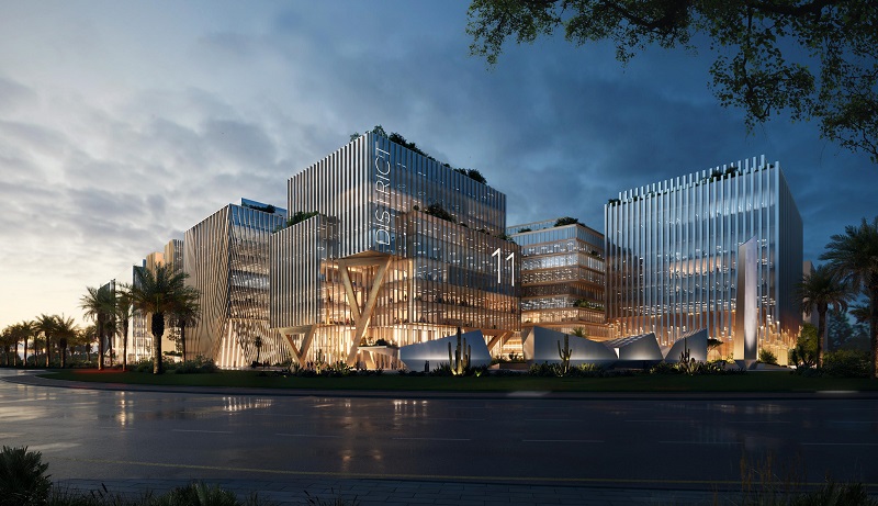 The development includes retail stores, business management centers, meeting rooms, offices, restaurants, and cafes to cater to employees and visitors. A massive parking area spanning 1 million square feet, equipped with electric vehicle charging stations, ensures convenience for “District 11” visitors.