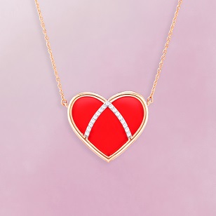 Crafted with precision and elegance, this pendant allows wearers to select two heart inserts from a vibrant palette of colors and materials, including malachite green, pearlescent white, passion red, and midnight black. Set in luxurious 18K rose gold and adorned with dazzling diamonds, this exquisite piece offers a timeless yet contemporary way to celebrate love in all its shades.