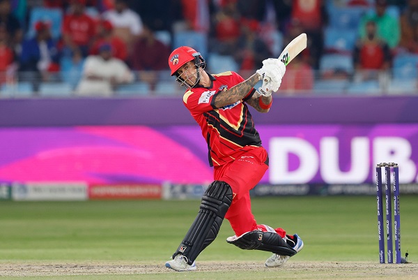 Chasing a steep target amidst the pressure of a playoff, the Dubai Capitals had a steady powerplay of 47 runs without losing any wickets. Adam Rossington struck Sam Curran for three boundaries in the fifth over to make his intentions clear, but the Capitals were already falling behind the equation. Meanwhile, Shai Hope mustered a run-a-ball knock of 17 runs before he was claimed by Wanindu Hasaranga in the seventh over.