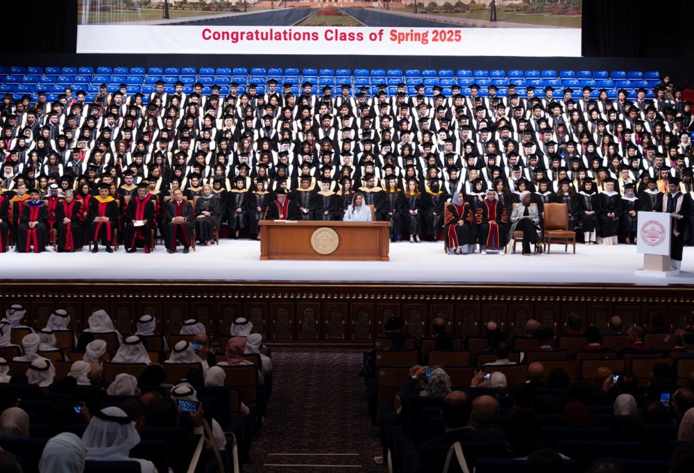 The Class of Spring 2025 included 123 graduate students (master’s and PhD) and 671 undergraduates. Among them were 447 female and 347 male graduates, including 184 UAE nationals. Graduates were distributed across the university’s four colleges/school, with 126 from the College of Architecture, Art and Design; 149 from the College of Arts and Sciences; 208 from the School of Business Administration; and 311 from the College of Engineering.