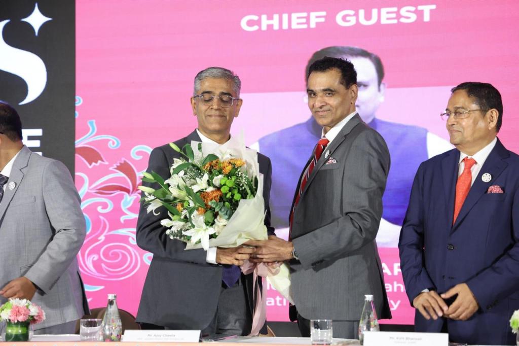 Shri Kirit Bhansali, Chairman, GJEPC, Shri Shaunak Parikh, Vice Chairman, GJEPC, Shri Nirav Bhansali, Convener-National Exhibitions, GJEPC,Shri Sabyasachi Ray, ED, GJEPC along with Committee of Administration (COA) welcomed several honoured guests and dignitaries such as Mr. Pavel Marynichev, CEO, ALROSA; Mr. Ajoy Chawla, CEO – Jewellery Division (and incumbent MD), The Titan Company Ltd.