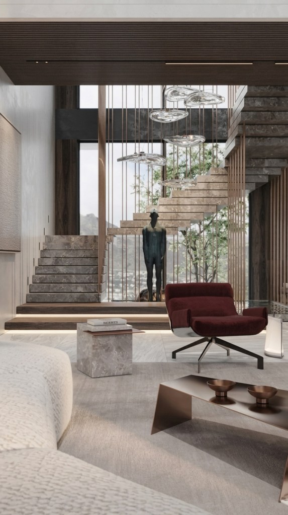 Structure also plays an important psychological role. In this context, masculinity in design is not about visual heaviness, but about direction, clarity, and control. A space without a clear centre can feel beautiful yet unfocused. A space with a strong axis, controlled paths, and a sense of spatial direction can create stability, physical alignment, and calm confidence.